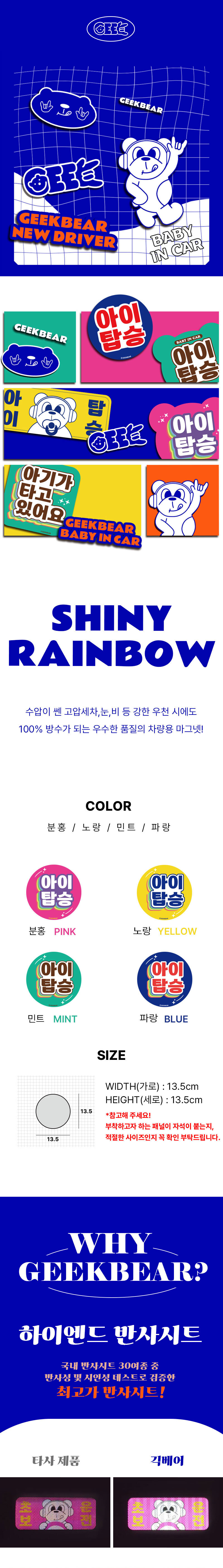 아이가 타고 있어요 마그넷 Shiny rainbow (원형)
