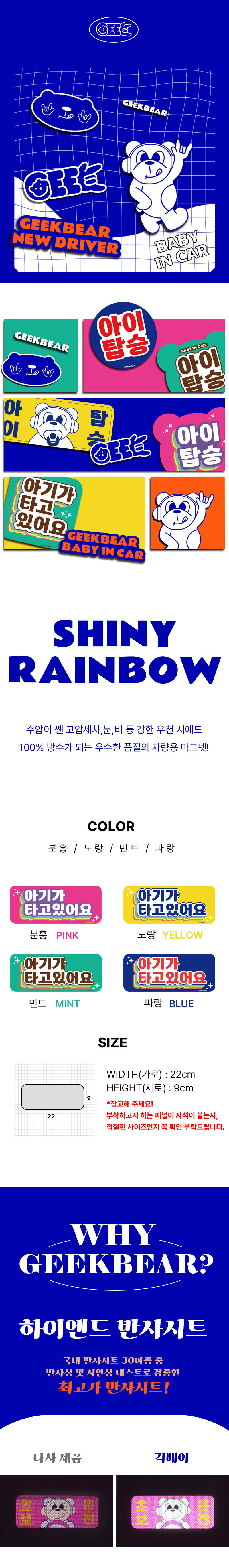 아이가 타고 있어요 마그넷 Shiny rainbow (직사각형)