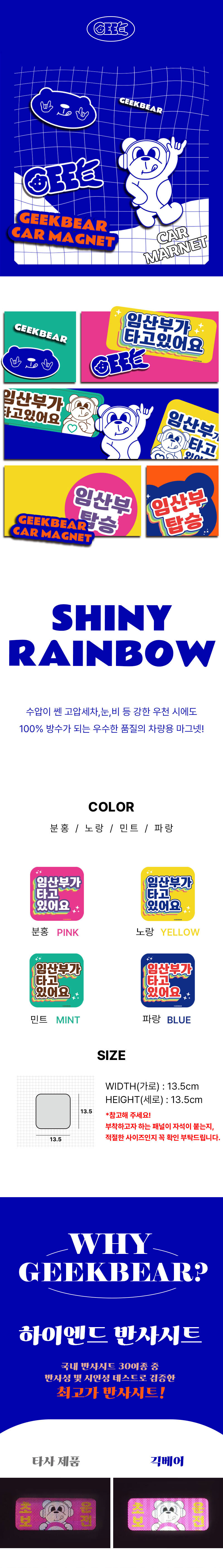 임산부가 타고 있어요 마그넷 Shiny rainbow (정사각형)